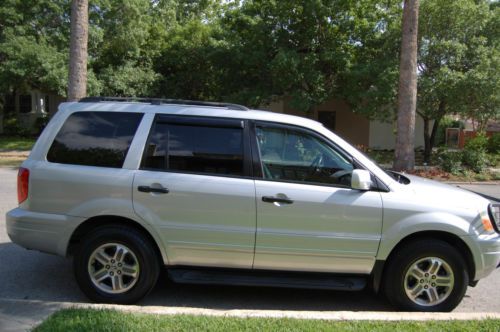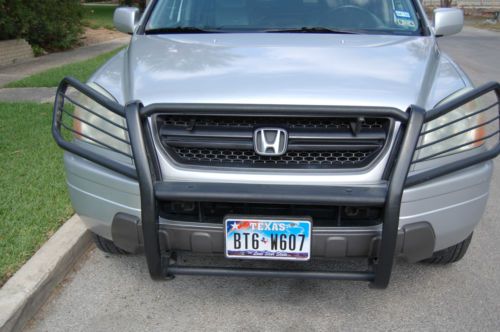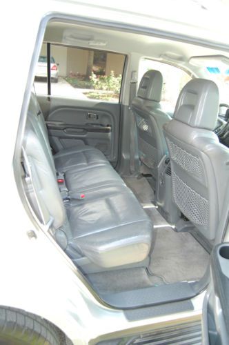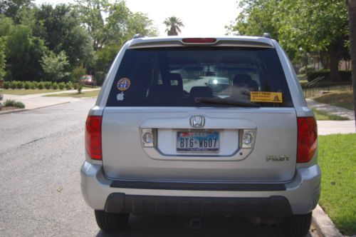 I have owned this 2004 Honda Pilot since 2008. It is amazingly clean for such a high mileage SUV. Honda has 213,000 miles. The leather seats are in great shape and has some wrinkling but no tears or rips. Mechanically the Honda is very sound and has been well maintained. A/C is ice cold. The body has a few scratches but no major dents or dings. Paint is still in great shape all over the vehicle. No flooding or accidents on this vehicle. Third row seats 8 or 9. Recently replaced the rear brake pads (May 2014) and was told that the front pads were at about 70%. Purchased two new rear tires (May 2014) and the front tires are at about 14/32 nds. Honda runs and drives great and I would not be afraid to take it anywhere. Last summer we drove it from Texas to California with the wife and kids (with 188,000 miles on it!). It needs front struts and shocks (bouncy ride but does not affect drivability). Front passenger door only locks manually but other doors lock with clicker. No leaks of any kind and does not use oil. Please contact me if you have any questions or want photos of any specific area. Thanks for looking and good luck bidding!!! |