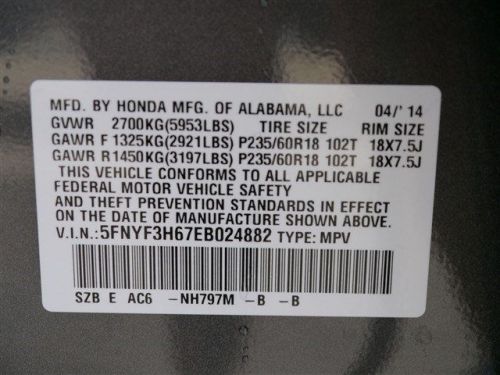 VIN (Vehicle Identification Number): 5FNYF3H67EB024882