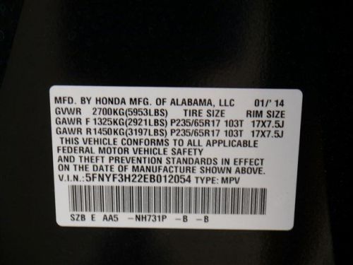VIN (Vehicle Identification Number): 5FNYF3H22EB012054