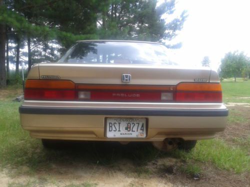 This is a 1989 Honda Prelude SI, manual transmission car. It is not running. The car has been stored under cover for a long time. We stored it in our carport while we were out of state. When we returned, something had built a nest in the timing belt. When we cranked it, it jumped time. We shut it down immediately. I replaced the head with a rebuilt head from National Cylinder head. The car ran fine with the rebuilt head. It did smoke on start up. The cylinder head came sealed in shrink wrap but it was obvious it had been on the shelf a long time. The ASE mechanic that helped me do the work felt a valve stem seal had dried out as the smoking was getting less every day we drove it. We had to go back out of state so the car sat again for a long period. When we returned there was a major problem with the electrical system. Something had gone to ground. Even with the charger on, it will not hold enough juice to light the headlights. Everything but the AC and the antenna retractor was operational when we stored it. The AC components are all there, but it was not operational. I have tried to show every defect in my photos, I have more pic's if you request them. Please ask questions, I'll do my best to answer them. There is rust in three places on the drivers side, specifically, a hole in the rocker panel behind the front wheel, two rust bubbles on the door, rust bubbles directly in front of the rear wheel. There is a scuff on the drivers side rear bumper corner. There are tears in the drivers side interior door panel where it closes. There is a small tear in the same place on the passenger door. The skylite is cracked but does not leak. There is a repaired chip in the windshield low in the center, not in your line of view. The undercarriage is solid most of the factory rustcoat is still in tact. When we replaced the head we did the timing belt and water pump. Also put a new fuel pump in it at that time. All the fluids were changed at that time, but they have sat in the vehicle now for over a year. The tires have decent tread but they should be replaced. As you can see from the undercarriage pics it need some exhaust work. There are not many of this body style classic Preludes left. This car needs lots of work but could be a great car for the right person. This car is sold AS IS, AS SHOWN, with no warranty expressed or implied. Please ask all the questions you can. I will be happy to answer them and provide more pics if you need them. Back around 2006 the car had a very minor accident. Bent the Front bumper support. Because of the age of the car, the insurance adjuster wanted to total the car. We disputed the action and won. We have the clear title on the car, and the body shop repair bill to repair the minor bumper support damage and the bumper skin.