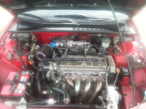 This is one you don't want to miss. A beautiful Lude with no rust, fresh red paint, new tires, and a fresh, that's right a fresh swap. This Lude was built originally as an automatic transmission 2.3 litre with power steering, air conditioning and really unreliable anti-lock brakes. I was a pretty boring Prelude. I swapped out the auto for a five speed and found a pretty rare H23A3. The H23A3 is a non-Vtec European only version of the 2.3 liter. It was used in European accord wagons and some other euro Honda I've never heard of. I have researched this engine, and im confident that it has some pretty good horsepower numbers. I have not had it on a dyno so I will not speculate. The compression ratio is 9.8:1. Low enough to turbo, and I have compression tested this engine and timed and tuned it, and it runs very strong, not an oil burning Vtec, all seals hold so it does NOT leak anything. The transmission shifts great. I left the stock exhaust on it, however I did Install an aftermarket performance exhaust header. It has two intake systems with the car the shorty shown in the engine picture and a cold air included. The entire engine bay has been scrubbed clean, the engine and transmission were power washed prior to installation. The car has no spare tire or jack. They were missing when I bought it. I can probably find a space saver and a jack to include if that's a deal breaker. The interior is very clean the previous owner didn't smoke in it but someone did & there are a few of those little burns here and there but they are in places you either sit or not in plain sight. The interior was pulled and cleaned. There are some small dings in the doors. The brake pads are brand new and it stops on a dime. I can include the power steering pump if requested. This car is a head turner. Great gas mileage but that should go without saying. The power sunroof works great, no leaking, and no rust. I built this car with care and attention to detail. I can be contacted at 815-713-seven, seven, seven, five, between 8 a.m. and 11 p.m. central time, my name is Tony. I can also personally deliver this car by trailer at additional cost. I urge you to call with your questions and voice your concerns before bidding. I will be more than happy to answer any concerns you may have. I am a 15 year automotive technician who is a stickler for detail. I would live to keep this car and boost the hell out of it but I just don't have the time, the room, or the $$. If I had the money/time/room, I'd have this thing running high 12s maybe faster.