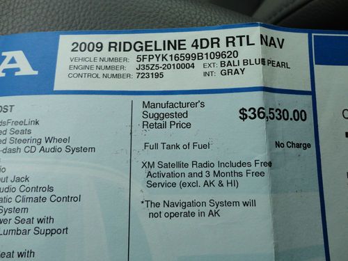 09 Ridgeline Rtl Navigation 4x4 Sunroof Heated Leather Seats Rear Camera Video on 2040-cars