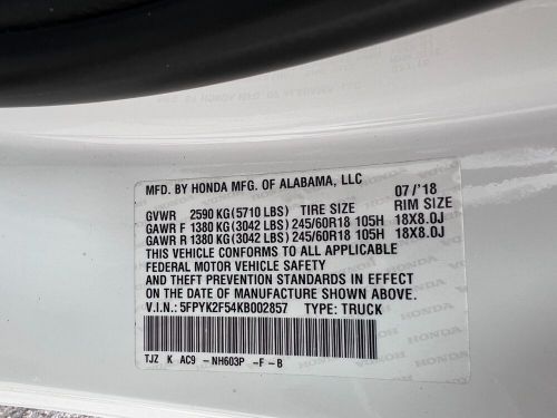 VIN (Vehicle Identification Number): 5FPYK2F54KB002857