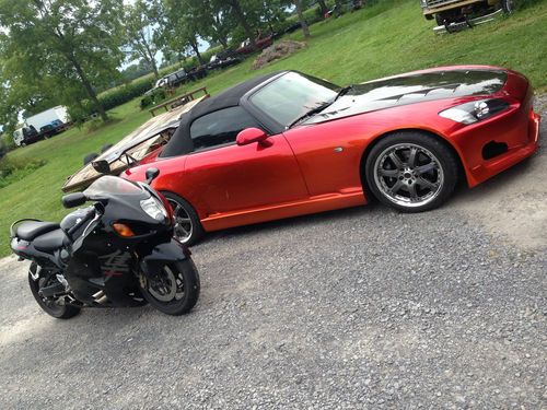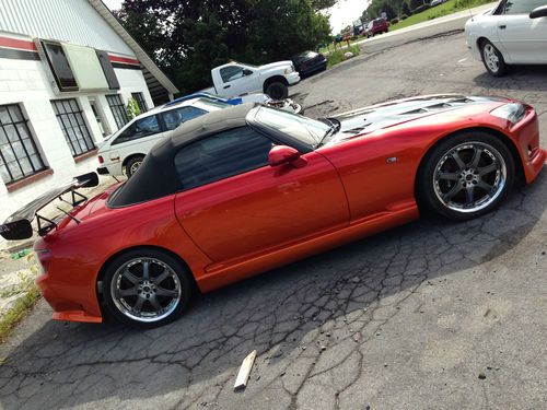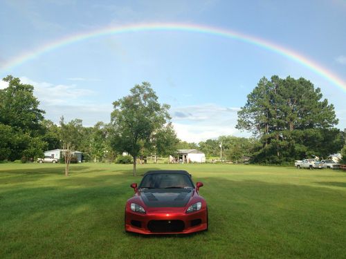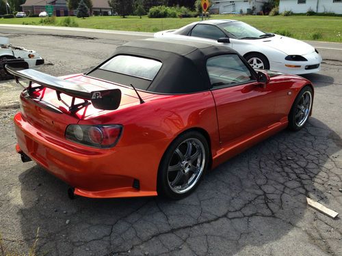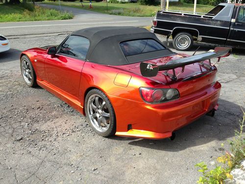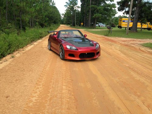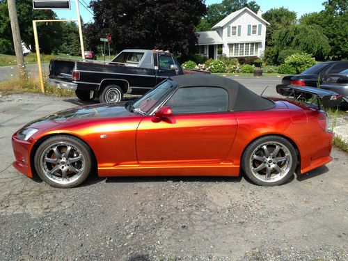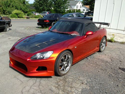Selling my '02 S2k just driven from New York to Chipley Florida. Selling to buy a truck. Never been sand blasted by southern roads, hardly seen rain, no winters. Mugen body kit, seibon carbon fiber hood, APT GTC200 spec spoiler, house of kolor candy red/candy orange flip flop paint, tien EDFC coil-overs with fully electronic adjustable dampening, mugen a-arm camber kits, mugen sway bars, energy urethane bushings, volk rays 3 piece staggered wheels 18x9.5/18x7.5 wheels, nitto 555 tires, HKS F1spec catback, shrunk2 header with Ti header wrap, spec s2000 ap1 aluminum flywheel, act sprung 6 puck clutch, 2009 ap2 f22c 2.2L engine with 14k miles, JL 10w6 woofer, twin NOS bottle nitrous kit, large amp, tv's in the head rests and trunk, 33k miles on the car, clean title, Brembo 13" 2 piece rotors with 4 piston calipers in front. Rear 13" Brembo rotors with adaptor plates and stock real calipers, KAAZ 1.5 way LSD rear differential, I'm sure there is more I'm forgetting. The car needs a rear oxygen sensor and a remote system for the electric door poppers which I have (viper brand). This car has roughly $64,000 invested. YouTube walk around and start up of the car: http://youtu.be/fEXUrVe4ZIs