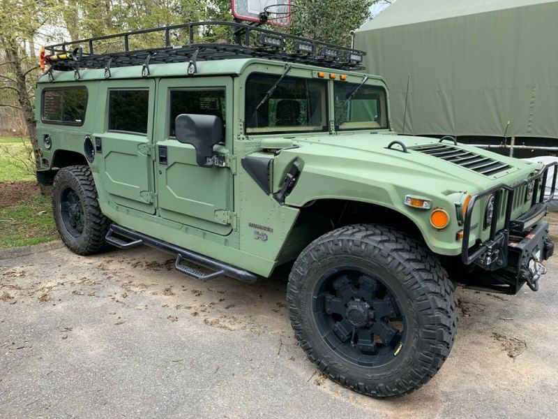 This Hummer was upgraded by AM General with a Heated Windshield and the Upgraded Heating & A/C kit that was available for later models. It has been serviced by a factory trained master AM General tech. Injection pump and all brake Pads & Calipers were replaced in 2017. Upgraded Cooling for Engine Block and new Injection Pump installed. All the A/C components and Heater core were replaced with the upgrade kit. 37" Tires on 20" Wheels. All bulbs (Interior & Exterior) replaced with LED's. Everything works as it should (Rear Left door lock sticks sometimes). This Hummer H1 has an Aluminum Body with a Steel Top.