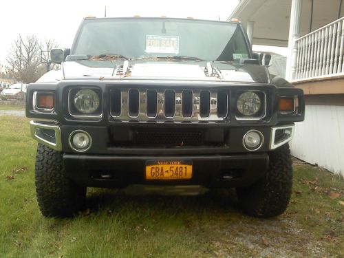 HELLO IM SELLING MY 2003 BLACK HUMMER H2 THAT HAS 64000 MILES ON IT. THE TRUCK RUNS GREAT AND IS SWEET LOOKING TURNS HEADS EVERYWHERE WHEN DRIVING. I HAVE ALWAYS KEPT THIS TRUCK WASHED AND WAXED AND IN GARAGE SINCE I HAVE HAD IT. IT HAS LOTS OF CHROME FRONT BRUSH GUARD AND TAILLIGHT GUARDS. THE TRUCK LOOKS GOOD BUT ISNT PERFECT HAS SOME SCRATCHES BUT ISNT BAD FOR A 10 YEAR OLD TRUCK. I HATE TO GET RID OF IT BUT AM SELLING TO BUY A DUMP TRUCK FOR MY LANDSCAPING BUSINESS. THE TRUCK IS BEING SOLD AS IS. PLEASE LET ME KNOW IF U HAVE ANY QUESTIONS AT ALL BEFORE BIDDING. THE RESERVE PRICE IS VERY LOW FOR AN H2 WITH THIS LOW OF MILAGE SEEING HOW MUCH THESE TRUCKS WITH OVER A 100,000 MILES SELL FOR. TOOK ME AWHILE LOOKING TO FIND A BLACK ONE IN THIS SHAPE WITH THIS KIND OF MILAGE THESE ARE GETTING HARDER TO FIND WITH LOWER MILAGE. I WILL SHIP THE TRUCK ANYWHERE AS LONG AS ARRANGEMENTS AND COST ARE MADE BY THE BUYER. I HAVE THE TRUCK PRICED WELL BELOW KBB VALUE.
