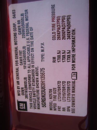VERY WELL RESERVED HUMMER THAT RIDES GREAT AND HAS BEEN WELL MAINTAINED. NO PROBLEMS THAT I'M AWARE OF EXCEPT ENGINE LIGHT STAYS ON. YOU NEVER WOULD EVEN BE ABLE TO TELL IT HAS 166,000 MILES ON IT BECAUSE IT RIDES SO GOOD......LOW RESERVE I NEED TO MOVE BECAUSE OF DIVORCE