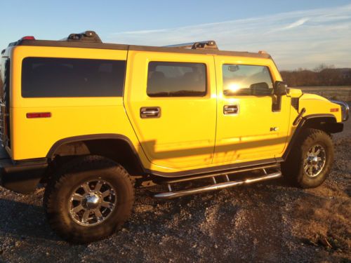 Live the dream in your new 2003 Yellow HUMMER H2! ONE OWNER! Garage kept, very good condition, with 143,648 miles. Loaded with CHROME - front grill cover, HUMMER letter inserts inside and out, rear view mirror caps, running boards and rear light protectors. Super expensive, eye catching Detata wheels. Third row seat, heated front and rear seats. 1SC Luxury Series edition. Only 5,000 miles on the tires. NO sunroof. ALWAYS serviced by Weil Cadillac Hummer in Libertyille, IL or Crest Cadillac in Nashville, TN. All preventative maintenance performed regularly. You'll love the smooth ride, fun and safety this Hummer H2 offers! Email or text for more photos!