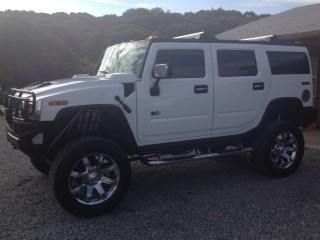 6" FABTECH LIFT ON 22" WHEELS 37" FALKEN WILD PEAK TIRES. ALL SUEDE HEADLINER. INTERIOR IS IN GOOD CONDITION NO RIPS OR TEARS. NO ACCIDENTS. ADULT DRIVEN NOT ABUSED OR OFF ROAD. 99K MILES LOW MILES FOR THE YEAR. AWD 4X4 WITH LOCKING DIFF, FLOWMASTER EXHAUST, POWER PROGRAMMER, TOW PACKAGE, 30" CREE LED LIGHT BAR MOUNTED ON FRONT BRUSH GUARD, FRONT GUARD AND TAIL LIGHT GUARDS POWDER COATED GLOSS BLACK, TIRES ARE AT 75%, CHROME SIDE STEPS, UNDERCARRIAGE ROCK GUARDS, DVD/BLUETOOTH/CD/AM/FM STEREO. ALPINE DOOR SPEAKERS AND AMP. VERY CLEAN H2 WELL TAKEN CARE OF RECENT TUNE UP @ DEALER INCLUDING BELTS, SPARKPLUGS, WIRES, FILTERS, DIFF FLUID CHANGE, TRANSMISSION SERVICE, COOLING SERVICE NEW THERMOSTAT, ALL NEW BILSTEIN SHOCKS INCLUIDING FRONT, REAR, AND DOUBLE SHOCK FRONTS WITH RESIVORS. GREAT PAINT, HID LIGHTS, AND LED INTERIOR LIGHTS. 20,000 OBO ANY ADDITIONAL QUESTIONS CALL OR TEXT 6199408793 JOE.