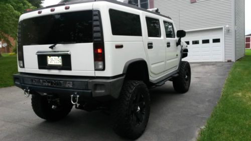 I bought this H2 in October of 2010, I drove it most the first two years as a daily driver and have driven it less and less each year to the point where I just don't drive it anymore (I have a company vehicle now). It's paid off and I'm ready to get rid of it, I have the clean title in hand. I've only put 16,123 miles on it in about 3.5 years, it has 55,429 on it right now. I haven't driven it at all in the winter season in the past two years. I take good care of it and have all the service records since I bought it. It has a 6 inch Fabtech lift kit with dual front shocks, which was installed by the previous owner. It has 20 inch black Rockstars, with 37x12.5 Nitto Trail Grappler's that still have 1/2" deep tread remaining. If I put new tires on it I would try 40's, I think they will fit. It has a Superchips Cortex Programmer that comes with it. You can use it to read codes and adjust the speedometer for the larger tires, and lots of other things I never tried. The stock Bose system has been removed and replaced with some high end Alpine tweeters and mids. The truck is wired and ready to accept your amp and subs. It's fine how it is but it is lacking base. I had some old 12's and amp in there and it sounded pretty good. The stock Bose head unit has also been removed and replaced with a decent Kenwood single disc player. There is a cord in the glove box for connecting iPhone/iPad/iPod/etc (the older, wider plug). I have the third row seat that is included. In and out this truck is in great shape for a 9 year old vehicle. Any questions please ask. Pick up in person or arrange for shipping. Prefer cash but will accept certified bank check but the funds have to clear before the truck or title leave my possesion. No reserve, please have funds lined up before bidding.
