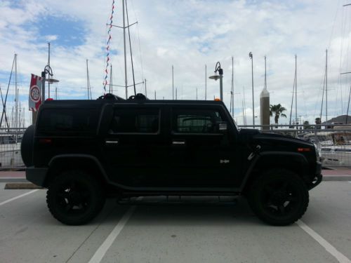 2007 black on black Hummer H2 with 55,276 miles. Standard features for this model which include leather seats, moon roof and also digital cd/mp3 player with dvd capabilities. This H2 has practically brand new wheels and tires which I put on after purchasing it. The tires are 35 inch Federal M/T with 20 inch black Rockstar xd series rims.Ive had this H2 for roughly a year and have had no problems with it what so ever, car is a weekend driver and is very well taken care of. The only imperfection to my knowledge is a minor rock chip in the windshield but there is no spidering. I purchased this vehicle from a certified pre owned dealership in the Houston area, the vehicle had roughly 47k miles on it when I purchased it. This is a non smoker vehicle and is in very good condition. I will assist in shipping as far as helping with being home when transport arrives or local pickup will also do. Starting price is reserve price.