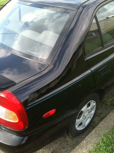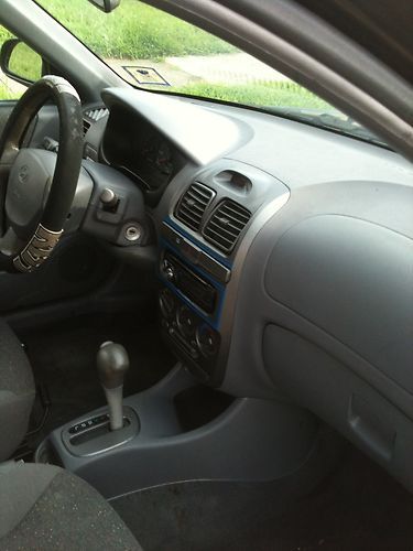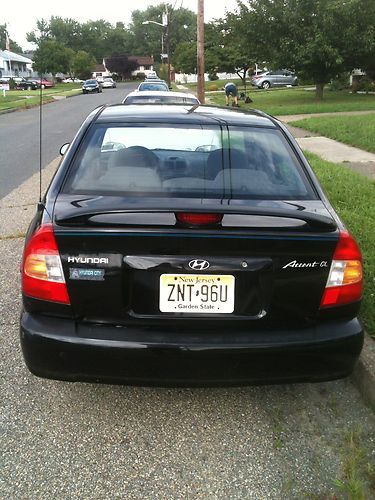 Up for sale is a 2000 Hyundai Accent GL 4-Door Sedan.Black Exterior/Charcoal Gray Interior.This car is an excellent mechanically driven vehicle.It starts right up every time and it has never broken down on me .It has 4 relatively new tires and I recently put front brakes on the car.The air conditioner blows ice cold air every time.It has a newer battery installed and the alternator was also replaced.I recently tuned the car up with 4 new spark plugs and 4 new wires,air filters and an oil change.I change the oil regulary.This car also comes with a custom JVC AM/FM/CD player head unit that is also smart phone compatible so you can play your down loaded music on it..I installed 4 new Pioneer speakers.2-front,and 2-rear.Everything is working on the car inside and out.The interior is a charcoal nylon cloth color and it is very clean inside the car.The dashboard is solid and the seats are in nice shape with the exception of a small cigarette hole on the front passenger seat.That was there ever since i bought the car back in February of 2010.I will repair it.I do not smoke.I will also put a new set of floor mats inside the car.I give the interior of this car a solid 8.Mechanically,this car runs great.It has never broken down on me.There are also no fluid leaks.The transmission shifts properly and the engine runs smooth with no noises.i did have the overdrive in the transmission replaced.The original overdrive was showing wear so i just had it replaced for 500.00..I also replaced the right passenger CVC axle because the rubber boot split and that caused it to wear the bushing..That cost me about 135.00.