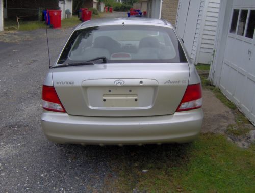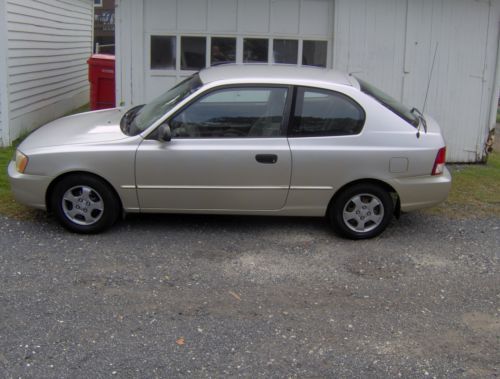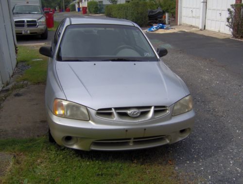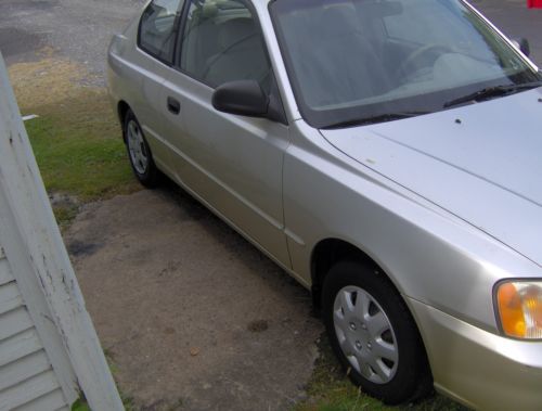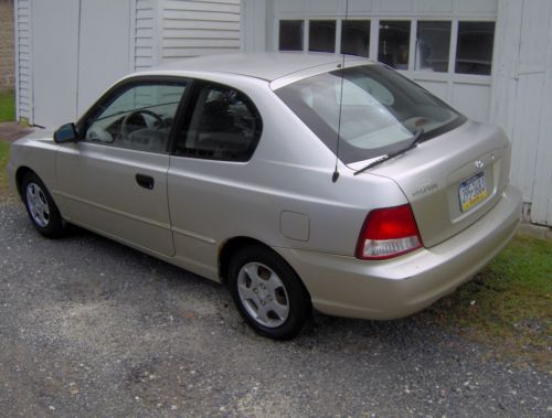 2002 Hyundai Accent 3 door coupe. 1.6 liter engine. auto trans. power steering and brakes. air cond which blows ice cold. power windows which work. am-fm radio sometimes works or doesn't.. .. drivers seat shows a little wear. rest of interior is sharp... Motor purrs, good power, smooth, no smoke. tranny works great cold, all gears are there, shifts smooth. When warmed up tranny goes to fail safe mode( has 3rd gear only.) Turning ignition off and then restarting, tranny works fine again for short distance., something to do with resetting something, then goes back to failsafe mode... My mechanic says it is some sensor or electronic control not working rite,, basic tranny is fine......... right front tire tread is worn, all other tires have good tread. Not Pa. state inspected... Nice looking clean car gets over 30 mpg highway. Sold as is-where is.. buyer responsible for pickup or transporting. A really inexpensive good looking and running car with exception of tranny issue.
