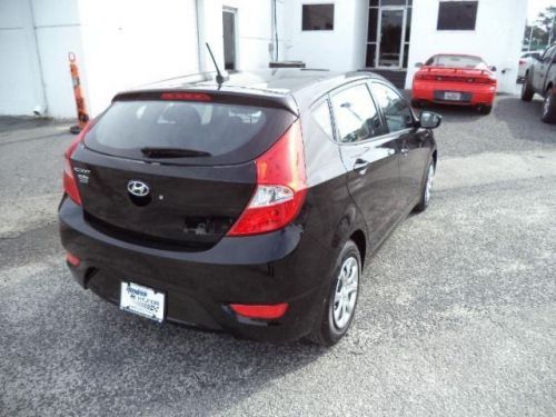 This 2014 Hyundai Accent 4dr 5dr HB Auto GS Hatchback features a 1.6L DOHC 16-VALVE I-4 GD 4cyl Gasoline engine. It is equipped with a 6 Speed Automatic transmission. The vehicle is Ultra Black Pearl with a Black interior. It is offered with a full factory warranty. - Air Conditioning, Cruise Control, Tinted Windows, Power Door Locks, Tachometer, Digital Info Center, Tilt Steering Wheel, Side Airbags, Keyless Entry, ABS Brakes, Traction Control, Dynamic Stability, Rear Defogger, Intermittent Wipers, Gate-Type And Hillstart Assist Contol, 2.937 Axle Ratio, 1.6L DOHC 16-Valve I-4 GDI -inc: Dual Continuously Variable Valve Timing (D-CVVT), variable induction system and aluminum block and head, Front-Wheel Drive, Front Bucket Seats -inc: 6-way adjustable driver seat including height adjustment, 4-Way Passenger Seat -inc: Manual Recline and Fore/Aft Movement, Power Rear Windows, Front Cupholder, HVAC -inc: Underseat Ducts, Glove Box, Driver Foot Rest, Interior Trim -inc: Metal-Look Door Panel Insert and Metal-Look Interior Accents, Full Cloth Headliner, Cloth Door Trim Insert, Urethane Gear Shift Knob, Day-Night Rearview Mirror, Driver And Passenger Visor Vanity Mirrors, Full Floor Console with Storage, Front Map Lights, Fade-To-Off Interior Lighting, Full Carpet Floor Covering, Carpet Floor Trim, Rigid Cargo Cover, Cargo Features -inc: Spare Tire Tire Inflator, Cargo Space Lights, Driver And Passenger Door Bins, Power 1st Row Windows with Driver 1-Touch Down, Delayed Accessory Power, Digital/Analog Display, Manual Type Adjustable Front Head Restraints and Manual Adjustable Rear Head Restraints, Driver And Front Passenger Armrests, 1 Seatback Storage Pocket, 1 12V DC Power Outlet, Air Filtration, black, Tires: P175/70TR14 -inc: low rolling resistant Silica, Spare Tire Tire Inflator, Clearcoat Paint, Body-Colored Front Bumper, Body-Colored Rear Bumper, Black Side Windows Trim, Body-Colored Door Handles, Front Windshield -inc: Sun Visor Strip, Grille with Chrome B ... HYUNDAI HAS THE MOST MODERN, ATTRACTIVE, UPDATED LINE-UP FOR 2012. GET MORE CAR FOR YOUR HARD-EARNED DOLLAR FROM HENDRICK HYUNDAI'S INTERNET SALES TEAM!