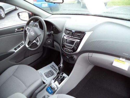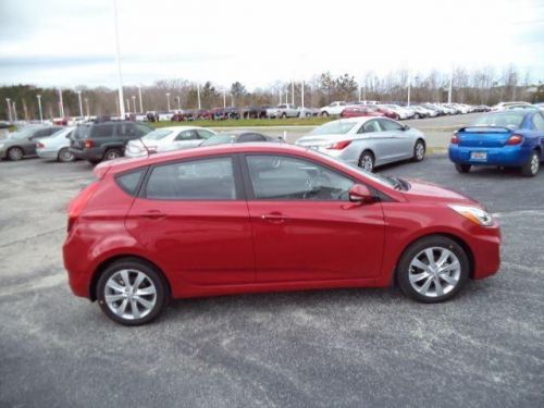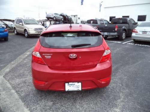 This 2014 Hyundai Accent 4dr 5dr HB Auto SE Hatchback features a 1.6L DOHC 16-VALVE I-4 GD 4cyl Gasoline engine. It is equipped with a 6 Speed Automatic transmission. The vehicle is Boston Red Pearl with a Gray interior. It is offered with a full factory warranty. - Air Conditioning, Cruise Control, Tinted Windows, Power Door Locks, Tachometer, Digital Info Center, Tilt Steering Wheel, Steering Wheel Radio Controls, Side Airbags, Keyless Entry, ABS Brakes, Traction Control, Dynamic Stability, Rear Defogger, Fog Lights, Intermittent Wipers, Alloy Wheels, Gate-Type And Hillstart Assist Contol, 2.937 Axle Ratio, 1.6L DOHC 16-Valve I-4 GDI -inc: Dual Continuously Variable Valve Timing (D-CVVT), variable induction system and aluminum block and head, Front-Wheel Drive, Front Bucket Seats -inc: 6-way adjustable driver seat including height adjustment, 4-Way Passenger Seat -inc: Manual Recline and Fore/Aft Movement, Power Rear Windows, Leather/Metal-Look Steering Wheel, Front Cupholder, HVAC -inc: Underseat Ducts, Glove Box, Driver Foot Rest, Full Cloth Headliner, Cloth Door Trim Insert, Interior Trim -inc: Piano Black Instrument Panel Insert, Leather/Piano Black Gear Shift Knob, Day-Night Rearview Mirror, Driver And Passenger Visor Vanity Mirrors, Full Floor Console with Covered Storage, Front Map Lights, Fade-To-Off Interior Lighting, Full Carpet Floor Covering, Carpet Floor Trim, Rigid Cargo Cover, Cargo Features -inc: Spare Tire Tire Inflator, Cargo Space Lights, Driver And Passenger Door Bins, Delayed Accessory Power, Power 1st Row Windows with Driver 1-Touch Up/Down, Digital/Analog Display, Manual Type Adjustable Front Head Restraints and Manual Adjustable Rear Head Restraints, 1 Seatback Storage Pocket, Sliding Front Center Armrest, 1 12V DC Power Outlet, Air Filtration, gray, Tires: P195/50HR16 -inc: low rolling resistant Silica, Spare Tire Tire Inflator, Clearcoat Paint, Body-Colored Front Bumper, Body-Colored Rear Bumper, Black Side Windows Trim, Body-Col ... HYUNDAI HAS THE MOST MODERN, ATTRACTIVE, UPDATED LINE-UP FOR 2012. GET MORE CAR FOR YOUR HARD-EARNED DOLLAR FROM HENDRICK HYUNDAI'S INTERNET SALES TEAM!