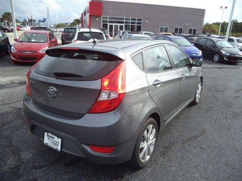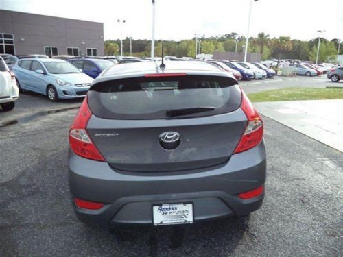This 2014 Hyundai Accent 4dr 5dr HB Auto SE Hatchback features a 1.6L DOHC 16-VALVE I-4 GD 4cyl Gasoline engine. It is equipped with a 6 Speed Automatic transmission. The vehicle is Triathlon Gray Metallic with a Black interior. It is offered with a full factory warranty. - Air Conditioning, Cruise Control, Tinted Windows, Power Door Locks, Tachometer, Digital Info Center, Tilt Steering Wheel, Steering Wheel Radio Controls, Side Airbags, Keyless Entry, ABS Brakes, Traction Control, Dynamic Stability, Rear Defogger, Fog Lights, Intermittent Wipers, Alloy Wheels, Gate-Type And Hillstart Assist Contol, 2.937 Axle Ratio, 1.6L DOHC 16-Valve I-4 GDI -inc: Dual Continuously Variable Valve Timing (D-CVVT), variable induction system and aluminum block and head, Front-Wheel Drive, Front Bucket Seats -inc: 6-way adjustable driver seat including height adjustment, 4-Way Passenger Seat -inc: Manual Recline and Fore/Aft Movement, Power Rear Windows, Leather/Metal-Look Steering Wheel, Front Cupholder, HVAC -inc: Underseat Ducts, Glove Box, Driver Foot Rest, Full Cloth Headliner, Cloth Door Trim Insert, Interior Trim -inc: Piano Black Instrument Panel Insert, Leather/Piano Black Gear Shift Knob, Day-Night Rearview Mirror, Driver And Passenger Visor Vanity Mirrors, Full Floor Console with Covered Storage, Front Map Lights, Fade-To-Off Interior Lighting, Full Carpet Floor Covering, Carpet Floor Trim, Rigid Cargo Cover, Cargo Features -inc: Spare Tire Tire Inflator, Cargo Space Lights, Driver And Passenger Door Bins, Delayed Accessory Power, Power 1st Row Windows with Driver 1-Touch Up/Down, Digital/Analog Display, Manual Type Adjustable Front Head Restraints and Manual Adjustable Rear Head Restraints, 1 Seatback Storage Pocket, Sliding Front Center Armrest, 1 12V DC Power Outlet, Air Filtration, black, Tires: P195/50HR16 -inc: low rolling resistant Silica, Spare Tire Tire Inflator, Clearcoat Paint, Body-Colored Front Bumper, Body-Colored Rear Bumper, Black Side Windows Trim, ... HYUNDAI HAS THE MOST MODERN, ATTRACTIVE, UPDATED LINE-UP FOR 2012. GET MORE CAR FOR YOUR HARD-EARNED DOLLAR FROM HENDRICK HYUNDAI'S INTERNET SALES TEAM!