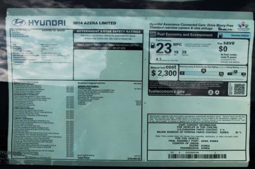 Graph Blk Leather. Convenient controls. Goes hush. If you want an amazing deal on an amazing car that will carry all the people you care about, then take a look at this family-hauling 2014 Hyundai Azera. This Azera has plenty of passenger space and cargo room galore. Experience the Mungenast Difference! Visit us at mungenasthyundai.com. Mungenast Hyundai in Hazelwood just off of North Lindbergh and I-270 at 649 Dunn Rd, Hazelwood, MO 63042 888-212-1161 St Louis's Low-Priced Volume Hyundai Dealer! Remember, Hyundai makes the car, Mungenast makes the difference!Prices do not include additional fees and costs of closing, including government fees and taxes, any finance charges, any dealer fees, any emissions testing fees or other fees. All prices, specifications and availability subject to change without notice. Contact dealer for most current information. Advertised price includes all available factory and dealership rebates and discounts. See Mungenast Hyundai for complete details. This offer includes all rebates and dealer cash back to the dealer. Includes the $2000 HMF Bonus cash so this offer in not available with 0% financing. Includes Valued Owner Rebate of $500 and Military Rebate of $500. See a Mungenast Sales Associate for complete details and requirements for rebates. All Dealer Installed Accessories are extra. Come Experience the Mungenast Difference at Mungenast Hyundai. St Louis' Low Price Volume Hyundai Dealership. View the new prices at MungenastHyundai.com At 270 and N. Lindberg on Dunn Rd in Hazelwood, MO. Remember Hyundai Makes the Car, Mungenast Makes the Difference! 888-212-1161
