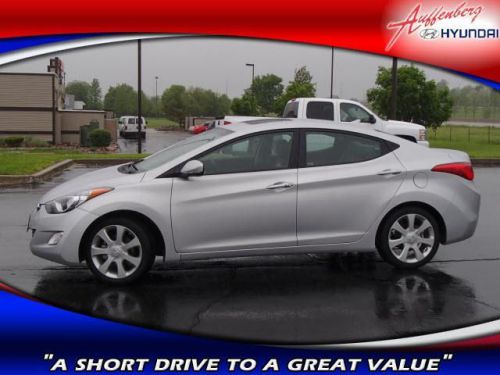 ABS brakes, ABS w/Electronic Brake Force Distribution (EBD), Alloy wheels, Dual Heated Power Outside Mirrors, Electronic Stability Control, Heated door mirrors, Heated Front Bucket Seats, Heated front seats, Heated rear seats, Illuminated entry, Low tire pressure warning, NAVIGATION, Power moonroof, Remote keyless entry, Remote Keyless Entry System w/Alarm, Tire Pressure Monitoring System, Traction control, and Traction Control System. This 2013 Elantra is for Hyundai fanatics looking far and wide for that perfect, gas-saving car. It will allow you to dominate the road with style and get terrific gas mileage while you're at it. At Auffenberg Hyundai, every pre-owned vehicle comes with at least a 12 month/12,000 mile powertrain warranty! See dealer for details.