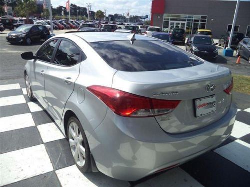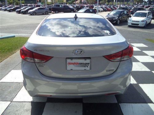 ======: Hendrick Certified. CARFAX 1-Owner, Excellent Condition. PRICED TO MOVE $2, 100 below NADA Retail! FUEL EFFICIENT 38 MPG Hwy/28 MPG City! Moonroof, Heated Leather Seats, Heated Rear Seat, Head Airbag, Satellite Radio, CD Player, Bluetooth. CLICK ME! ======HENDRICK CERTIFIED: 10 Year/100,000 Mile Powertrain Limited Warranty. Plus, 12 month/12,000 mile high-tech coverage for steering, suspension, air conditioning, electrical, fuel system, brakes and heating system, all else excluded. Other benefits include: 24-Hour Roadside Assistance with Gasoline Assistance, Flat Tire Change, Battery Jump Start, Locked-Out Assistance, and Towing plus Rental Coverage, Trip Interruption Service (hotel, transportation, meal reimbursement), 168-Point Vehicle Inspection, and Free CARFAX Vehicle History Report (some limitations apply see dealer for details). ======KEY FEATURES INCLUDE: Heated Driver Seat, iPod/MP3 Input, Bluetooth, Heated Seats. MP3 Player, Steering Wheel Controls, Child Safety Locks, Alarm, Heated Mirrors. ======OPTION PACKAGES: TECHNOLOGY PKG: navigation system with 7 screen, rearview camera, 360-watt premium audio with digital external amplifier, dual auto temp control, clean air ionizer, auto defogger system, auto headlamps, proximity key entry with electronic push button start, engine immobilizer, CARPETED FLOOR MATS, SUNROOF WIND DEFLECTOR, MUD GUARDS, RADIANT SILVER, GRAY, LEATHER SEAT TRIM. Serviced here, Non-Smoker vehicle, Originally bought here, Fully Inspected. ======VEHICLE REVIEWS: Great Gas Mileage: 38 MPG Hwy. ======AFFORDABLE: This Elantra is priced $2, 100 below NADA Retail. Closing Fee is included in the advertised/sales price. Pricing analysis performed on 6/17/2014. Horsepower calculations based on trim engine configuration. Fuel economy calculations based on original manufacturer data for trim engine configuration. Please confirm the accuracy of the included equipment by calling us prior to purchase. WE HAVE ACCESS TO THOUSANDS OF USED CARS THROUGH OUR SISTER STORES ALL OVER THE SOUTH EAST! GET MORE USED CAR FOR YOUR HARD-EARNED DOLLAR FROM HENDRICK HYUNDAI'S INTERNET SALES TEAM!