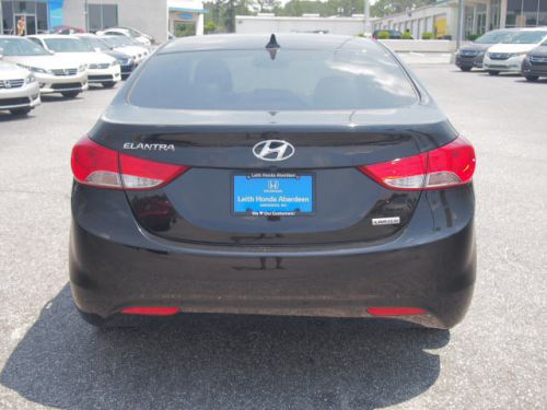 This black 2013 Hyundai Elantra Limited has everything you need. It has a 1.80 liter 4 CYL. engine. This one's on the market for $19,000. It is no secret that one-owner vehicles like this one are worth more because they are consistently driven and well maintained. Want a sedan you can rely on? This one has a safety rating of 4 out of 5 stars! Cozy up to heated seats and stay warm each winter. Check out the black leather interior. Open the sunroof on this vehicle and get your daily Vitamin D! Why not schedule your test drive today? Contact Information: Leith Honda Aberdeen, 11045 US 15-501, Aberdeen, NC, 28315, Phone: 866-233-9739, E-mail: sloan.bostic@leithhondaaberdeen.com.