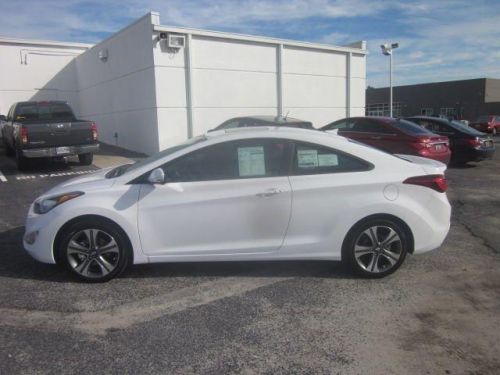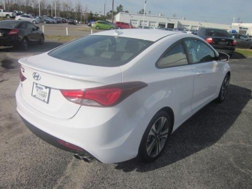 This 2014 Hyundai Elantra Coupe 2dr 2dr Coupe features a 2.0L DOHC 16V 4CYLINDER C 4cyl Gasoline engine. It is equipped with a 6 Speed Automatic transmission. The vehicle is Monaco White with a Gray interior. It is offered with a full factory warranty. - Air Conditioning, Cruise Control, Tinted Windows, Power Door Locks, Tachometer, Digital Info Center, Tilt Steering Wheel, Steering Wheel Radio Controls, Side Airbags, Keyless Entry, Security System, ABS Brakes, Traction Control, Dynamic Stability, Rear Defogger, Fog Lights, Intermittent Wipers, Alloy Wheels, 2.0L DOHC 16V 4Cylinder CVVT GDI -inc: hood insulator and chrome exhaust outlet, Front-Wheel Drive, Heated Front Seats, Premium Cloth Front Seats, 6-Way Driver Seat -inc: Manual Recline, 4-Way Passenger Seat -inc: Manual Recline, 60-40 Folding Bench Front Facing Fold Forward Seatback Premium Cloth Rear Seat, Fixed Rear Windows, Leather/Metal-Look Steering Wheel, Front Cupholder, Rear Cupholder, Remote Releases -Inc: Mechanical Trunk/Hatch and Mechanical Fuel, HVAC -inc: Underseat Ducts, Glove Box, Driver Foot Rest, Interior Trim -inc: Metal-Look/Piano Black Instrument Panel Insert, Full Cloth Headliner, Cloth Door Trim Insert, Leather/Piano Black Gear Shift Knob, Day-Night Rearview Mirror, Driver And Passenger Visor Vanity Mirrors with Driver And Passenger Illumination, Full Floor Console with Covered Storage, Front Map Lights, Fade-To-Off Interior Lighting, Full Carpet Floor Covering, Carpet Floor Trim and Carpet Trunk Lid/Rear Cargo Door Trim, Cargo Features -inc: Spare Tire Tire Inflator, Cargo Space Lights, FOB Controls -inc: Trunk/Hatch/Tailgate, Instrument Panel Covered Bin, Power 1st Row Windows with Driver 1-Touch Up/Down, Delayed Accessory Power, Outside Temp Gauge, Digital/Analog Display, Manual Adjustable Front Head Restraints and Manual Adjustable Rear Head Restraints, Sliding Front Center Armrest and Rear Center Armrest, Engine Immobilizer, 2 12V DC Power Outlets, Air Filtration, gray, gray ... HYUNDAI HAS THE MOST MODERN, ATTRACTIVE, UPDATED LINE-UP FOR 2012. GET MORE CAR FOR YOUR HARD-EARNED DOLLAR FROM HENDRICK HYUNDAI'S INTERNET SALES TEAM!