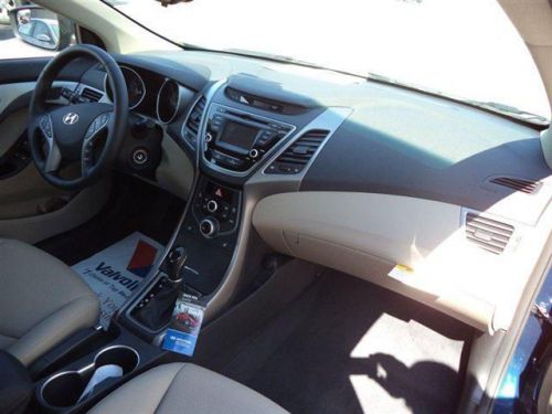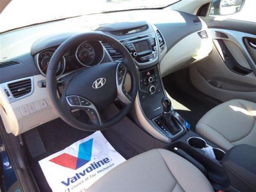 This 2014 Hyundai Elantra 4dr 4dr Sdn Auto Limited Sedan features a 1.8L DOHC 16V 4-CYLINDER 4cyl Gasoline engine. It is equipped with a 6 Speed Automatic transmission. The vehicle is Windy Sea Blue with a VYF interior. It is offered with a full factory warranty. - Air Conditioning, Cruise Control, Tinted Windows, Power Door Locks, Tachometer, Digital Info Center, Tilt Steering Wheel, Steering Wheel Radio Controls, Side Airbags, Keyless Entry, Security System, ABS Brakes, Traction Control, Dynamic Stability, Rear Defogger, Fog Lights, Intermittent Wipers, Alloy Wheels, Lock-Up Torque Converter, Gate Type And Electronic Shift Lock System, Front-Wheel Drive, Heated Front Seats -inc: power driver seat with lumbar support, 4-Way Passenger Seat -inc: Manual Recline and Fore/Aft Movement, Power Rear Windows, Leather/Metal-Look Steering Wheel, Front Cupholder, Rear Cupholder, Remote Releases -Inc: Mechanical Trunk/Hatch and Mechanical Fuel, HVAC -inc: Underseat Ducts, Glove Box, Driver Foot Rest, Full Cloth Headliner, Interior Trim -inc: Metal-Look Instrument Panel Insert, Leatherette Door Trim Insert, Leather/Piano Black Gear Shift Knob, Day-Night Rearview Mirror, Driver And Passenger Visor Vanity Mirrors with Driver And Passenger Illumination, Full Floor Console with Covered Storage, Front Map Lights, Fade-To-Off Interior Lighting, Full Carpet Floor Covering, Carpet Floor Trim and Carpet Trunk Lid/Rear Cargo Door Trim, Cargo Features -inc: Spare Tire Tire Inflator, Cargo Space Lights, FOB Controls -inc: Trunk/Hatch/Tailgate, Instrument Panel Covered Bin, Delayed Accessory Power, Power 1st Row Windows with Driver 1-Touch Up/Down, Outside Temp Gauge, Digital/Analog Display, Manual Adjustable Front Head Restraints and Manual Adjustable Rear Head Restraints, Sliding Front Center Armrest and Rear Center Armrest, 2 12V DC Power Outlets, Air Filtration, Tires: P215/45R17, Spare Tire Tire Inflator, Clearcoat Paint, Body-Colored Front Bumper, Body-Colored Rear Bumper wit ... HYUNDAI HAS THE MOST MODERN, ATTRACTIVE, UPDATED LINE-UP FOR 2012. GET MORE CAR FOR YOUR HARD-EARNED DOLLAR FROM HENDRICK HYUNDAI'S INTERNET SALES TEAM!