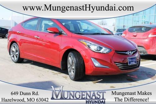 Elantra Limited, 4D Sedan, 1.8L 4-Cylinder DOHC 16V Dual CVVT, 6-Speed Automatic with Overdrive, FWD, and Venetian Red. Make your way over here! Do you want it all, especially wonderful fuel efficiency? Well, with this good-looking 2014 Hyundai Elantra, you are going to get it.. When H2O starts showing up in the weather forecast, the FWD power delivery will help keep you in control of things. Experience the Mungenast Difference! Visit us at mungenasthyundai.com. Mungenast Hyundai in Hazelwood just off of North Lindbergh and I-270 at 649 Dunn Rd, Hazelwood, MO 63042 888-212-1161 St Louis's Low-Priced Volume Hyundai Dealer! Remember, Hyundai makes the car, Mungenast makes the difference!Prices do not include additional fees and costs of closing, including government fees and taxes, any finance charges, any dealer fees, any emissions testing fees or other fees. All prices, specifications and availability subject to change without notice. Contact dealer for most current information. Advertised price includes all available factory and dealership rebates and discounts. See Mungenast Hyundai for complete details. This offer includes all rebates and dealer cash back to the dealer. Includes the $2000 HMF Bonus cash so this offer in not available with 0% financing. Includes Valued Owner Rebate of $500 and Military Rebate of $500. See a Mungenast Sales Associate for complete details and requirements for rebates. All Dealer Installed Accessories are extra. Come Experience the Mungenast Difference at Mungenast Hyundai. St Louis' Low Price Volume Hyundai Dealership. View the new prices at MungenastHyundai.com At 270 and N. Lindberg on Dunn Rd in Hazelwood, MO. Remember Hyundai Makes the Car, Mungenast Makes the Difference! 888-212-1161