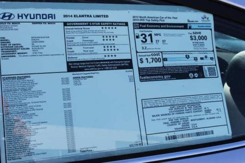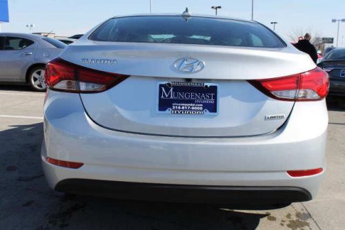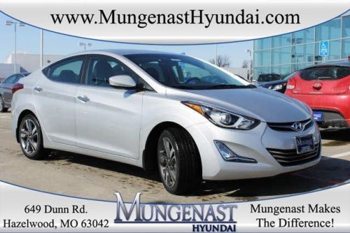 Elantra Limited, 4D Sedan, 1.8L 4-Cylinder DOHC 16V Dual CVVT, 6-Speed Automatic with Overdrive, FWD, Radiant Silver, and Blk Leather. Dave Mungenast Hyundai is delighted to offer this good-looking 2014 Hyundai Elantra. This Elantra not only has plenty of power, but also still manages to give you fantastic fuel efficiency. Experience the Mungenast Difference! Visit us at mungenasthyundai.com. Mungenast Hyundai in Hazelwood just off of North Lindbergh and I-270 at 649 Dunn Rd, Hazelwood, MO 63042 888-212-1161 St Louis's Low-Priced Volume Hyundai Dealer! Remember, Hyundai makes the car, Mungenast makes the difference!Prices do not include additional fees and costs of closing, including government fees and taxes, any finance charges, any dealer fees, any emissions testing fees or other fees. All prices, specifications and availability subject to change without notice. Contact dealer for most current information. Advertised price includes all available factory and dealership rebates and discounts. See Mungenast Hyundai for complete details. This offer includes all rebates and dealer cash back to the dealer. Includes the $2000 HMF Bonus cash so this offer in not available with 0% financing. Includes Valued Owner Rebate of $500 and Military Rebate of $500. See a Mungenast Sales Associate for complete details and requirements for rebates. All Dealer Installed Accessories are extra. Come Experience the Mungenast Difference at Mungenast Hyundai. St Louis' Low Price Volume Hyundai Dealership. View the new prices at MungenastHyundai.com At 270 and N. Lindberg on Dunn Rd in Hazelwood, MO. Remember Hyundai Makes the Car, Mungenast Makes the Difference! 888-212-1161