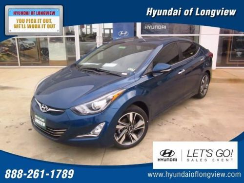 2014 Hyundai ELANTRA Hyundai of Longview presents this 2014 Hyundai ELANTRA 4DR SDN AUTO LIMITED. Represented in WINDY SEA BLUE. Under the hood you will find the 1.8L I4 16V MPFI DOHC coupled with the TRANSMISSION: 6-SPEED AUTOMATIC W/OD & SHIFTRONIC -INC: ACTIVE ECO SYSTEM LOCK-UP TORQUE CONVERTER GATE TYPE AND ELECTRONIC SHIFT LOCK SYSTEM. Warranty Information: Purchase this Hyundai with confidence knowing it is backed with a 60 month / 60000 mile warranty. Options and Safety Features: Nicely equipped with ABS And Driveline Traction Control Airbag Occupancy Sensor Blue Link Emergency S.O.S Curtain 1st And 2nd Row Airbags Dual Stage Driver And Passenger Front Airbags Dual Stage Driver And Passenger Seat-Mounted Side Airbags Electronic Stability Control (ESC) Low Tire Pressure Warning Outboard Front Lap And Shoulder Safety Belts -inc: Rear Center 3 Point Height Adjusters and Pretensioners Rear Camera Rear Child Safety Locks Side Impact Beams. Awards And Accolades: IIHS Top Safety Pick Hyundai of Longview WE WILL BEAT ANY DEAL! At Hyundai of Longview our goal is to provide you with an excellent vehicle purchase and ownership experience. For the finest in personal customer service please contact the Internet Department directly through this website. Also please note we take great care to keep our listings up to date however our inventory changes daily and not all inventory is online. If you do not see what you are looking for then please call. We look forward to providing you with excellent customer service and welcoming you as a Hyundai of Longview client. You can reach us at 888-464-9302 or by visiting us online at www.hyundaioflongview.com. Please call for more information. Please call us for more information. "You pick it out and We'll work it out!"