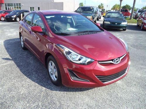 This 2014 Hyundai Elantra 4dr 4dr Sdn Auto SE Sedan features a 1.8L I4 FI DOHC 16V 4cyl Gasoline engine. It is equipped with a 6 Speed Automatic transmission. The vehicle is Venetian Red with a Gray interior. It is offered with a full factory warranty. - Air Conditioning, Cruise Control, Tinted Windows, Power Door Locks, Tachometer, Digital Info Center, Tilt Steering Wheel, Steering Wheel Radio Controls, Side Airbags, Keyless Entry, Security System, ABS Brakes, Traction Control, Dynamic Stability, Rear Defogger, Intermittent Wipers, Alloy Wheels, Lock-Up Torque Converter, Gate Type And Electronic Shift Lock System, Front-Wheel Drive, Front Bucket Seats -inc: 6-way adjustable drivers seat including height adjustment, 4-Way Passenger Seat -inc: Manual Recline and Fore/Aft Movement, Power Rear Windows, Front Cupholder, Rear Cupholder, Remote Releases -Inc: Mechanical Trunk/Hatch and Mechanical Fuel, HVAC -inc: Underseat Ducts, Glove Box, Driver Foot Rest, Interior Trim -inc: Metal-Look Instrument Panel Insert, Full Cloth Headliner, Urethane Gear Shift Knob, Day-Night Rearview Mirror, Full Floor Console with Covered Storage, Front Map Lights, Fade-To-Off Interior Lighting, Full Carpet Floor Covering, Carpet Floor Trim and Carpet Trunk Lid/Rear Cargo Door Trim, Cargo Features -inc: Spare Tire Tire Inflator, Cargo Space Lights, FOB Controls -inc: Trunk/Hatch/Tailgate, Instrument Panel Covered Bin, Power 1st Row Windows with Driver 1-Touch Down, Delayed Accessory Power, Outside Temp Gauge, Digital/Analog Display, Manual Adjustable Front Head Restraints and Manual Adjustable Rear Head Restraints, Front Center Armrest with Storage and Rear Center Armrest, 2 12V DC Power Outlets, Air Filtration, Tires: P195/65R15, Spare Tire Tire Inflator, Clearcoat Paint, Body-Colored Front Bumper, Body-Colored Rear Bumper with Gray Rub Strip/Fascia Accent, Black Side Windows Trim and Black Rear Window Trim, Body-Colored Door Handles, Front Windshield -inc: Sun Visor Strip, Grille w ... HYUNDAI HAS THE MOST MODERN, ATTRACTIVE, UPDATED LINE-UP FOR 2012. GET MORE CAR FOR YOUR HARD-EARNED DOLLAR FROM HENDRICK HYUNDAI'S INTERNET SALES TEAM!