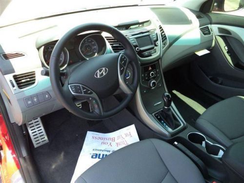 This 2014 Hyundai Elantra 4dr 4dr Sdn Auto Sport Sedan features a 2.0L DOHC 16V 4CYLINDER C 4cyl Gasoline engine. It is equipped with a 6 Speed Automatic transmission. The vehicle is Geranium Red with a Gray interior. It is offered with a full factory warranty. - Air Conditioning, Cruise Control, Tinted Windows, Power Door Locks, Tachometer, Digital Info Center, Tilt Steering Wheel, Steering Wheel Radio Controls, Sunroof, Side Airbags, Keyless Entry, Security System, ABS Brakes, Traction Control, Dynamic Stability, Rear Defogger, Fog Lights, Intermittent Wipers, Alloy Wheels, Sport Package, Lock-Up Torque Converter, Gate Type And Electronic Shift Lock System, 2.0L DOHC 16V 4Cylinder CVVT GDI -inc: hood insulator and chrome exhaust outlet, Front-Wheel Drive, Heated Front Bucket Seats -inc: power driver seat with lumbar support, 4-Way Passenger Seat -inc: Manual Recline and Fore/Aft Movement, Power Rear Windows, Leather/Metal-Look Steering Wheel, Front Cupholder, Rear Cupholder, Remote Releases -Inc: Mechanical Trunk/Hatch and Mechanical Fuel, HVAC -inc: Underseat Ducts, Glove Box, Driver Foot Rest, Full Cloth Headliner, Leatherette Door Trim Insert, Leather/Piano Black Gear Shift Knob, Interior Trim -inc: Metal-Look Instrument Panel Insert, Day-Night Rearview Mirror, Driver And Passenger Visor Vanity Mirrors with Driver And Passenger Illumination, Full Floor Console with Covered Storage, Front Map Lights, Fade-To-Off Interior Lighting, Full Carpet Floor Covering, Carpet Floor Trim and Carpet Trunk Lid/Rear Cargo Door Trim, Cargo Features -inc: Spare Tire Tire Inflator, Cargo Space Lights, FOB Controls -inc: Trunk/Hatch/Tailgate, Instrument Panel Covered Bin, Delayed Accessory Power, Power 1st Row Windows with Driver 1-Touch Up/Down, Outside Temp Gauge, Digital/Analog Display, Manual Adjustable Front Head Restraints and Manual Adjustable Rear Head Restraints, Sliding Front Center Armrest and Rear Center Armrest, Engine Immobilizer, 2 12V DC Power Outlets, Air ... HYUNDAI HAS THE MOST MODERN, ATTRACTIVE, UPDATED LINE-UP FOR 2012. GET MORE CAR FOR YOUR HARD-EARNED DOLLAR FROM HENDRICK HYUNDAI'S INTERNET SALES TEAM!