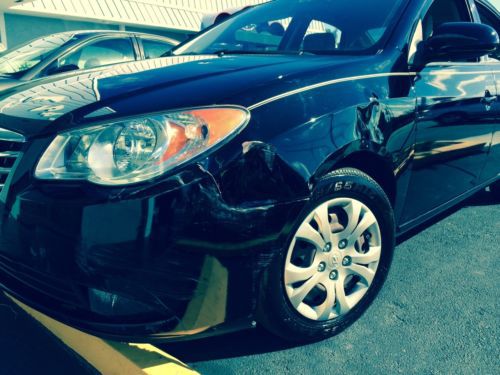 2010 Hyundai Elentra GLS Black w/Beige Cloth Interior. 40,000 miles. Car has some damage to the left front fender and various small dents and dings around the body. Please pictures.