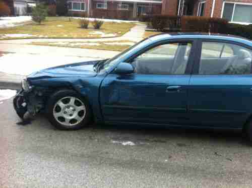 This is a 2002 Hyundai Elantra that was in a car accident. Selling it for parts. This car ran perfectly prior to the accident. The tires on the car were replaced in 2010 and only have 25,000 miles on them (they were 80,000 mile tires). One of the tires were ruined in the accident, but the other three were completely untouched. There's no reserve on this action. It is located in Park Ridge, IL. :)
