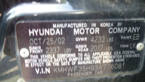 I am offering a 2003 Hyundai Sonata GLS with just under 100,000 miles. THIS VEHICLE NEEDS WORK! But it will be a great buy for someone who has the resources. It needs the following: Gas lines. The vehicle will start so you can heard the engine and check the transmission, but it cannot be driven any distance. Must be towed. Exhaust leak: I think its the pre-cat going to the manifold pipe. Wheel bearing ( which I have). I bought this vehicle with the idea of fixing it myself, but got involved in other projects. This will be a great buy for someone who understands mechanics and the values of automobiles. It has a clear PA title.