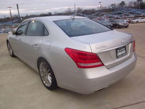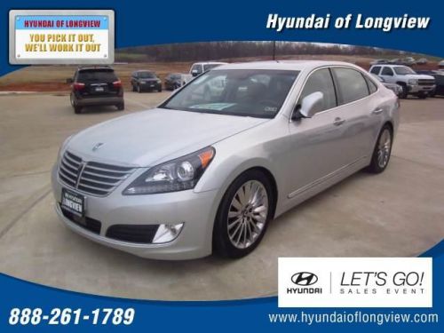 2014 Hyundai Equus 4dr Sdn Ultimate Hyundai of Longview presents this 2014 Hyundai EQUUS 4dr Sdn Ultimate. Represented in SILVER and complimented nicely by its *NOT LISTED interior. Under the hood you will find the V8 5.0 Liter coupled with the AUTO 8-SPD W/SHIFTRONIC. Warranty Information: Purchase this Hyundai with confidence knowing it is backed with a 60 month / 60000 mile warranty. Options and Safety Features: Nicely equipped with ABS And Driveline Traction Control, Airbag Occupancy Sensor, Blind Spot Sensor, Blue Link Emergency S.O.S, Curtain 1st And 2nd Row Airbags, Driver Knee Airbag and Rear Side-Impact Airbag, Dual Stage Driver And Passenger Front Airbags, Dual Stage Driver And Passenger Seat-Mounted Side Airbags, Electronic Stability Control (ESC), First Aid Kit, Forward Collision Mitigation, Front And Rear Parking Sensors, Low Tire Pressure Warning, Outboard Front Lap And Shoulder Safety Belts -inc: Height Adjusters and Pretensioners, Rear Child Safety Locks, Restricted Driving Mode, Side Impact Beams, Warning Lane Departure Warning and ABS (4-WHEEL), AIR COND REAR, AIR CONDITIONING, AM/FM STEREO, BACKUP CAMERA, BLIND-SPOT ALERT, BLUE LINK TELEMATICS, BLUETOOTH WIRELESS, COOLED SEATS, DAYTIME RUNNING LIGHTS, DUAL AIR BAGS, DUAL POWER SEATS, DVD SYSTEM, F&R SIDE AIR BAGS, HEAD CURTAIN AIR BAGS, HEATED SEATS, HID HEADLAMPS, KEYLESS ENTRY, KEYLESS START, LEATHER, LEXICON 7.1 DISCRETE SOUND, MOON ROOF, MP3 (SINGLE DISC), PARKING SENSORS, POWER DOOR LOCKS, POWER STEERING, POWER WINDOWS, PREMIUM WHEELS 19+, SIRIUSXM SATELLITE, STABILITY CONTROL, TILT WHEEL, TRACTION CONTROL. Hyundai of Longview WE WILL BEAT ANY DEAL! At Hyundai of Longview our goal is to provide you with an excellent vehicle purchase and ownership experience. For the finest in personal customer service, please contact the Internet Department directly through this website. Also, please note, we take great care to keep our listings up to date, however our inventory changes daily and "You pick it out and We'll work it out!"