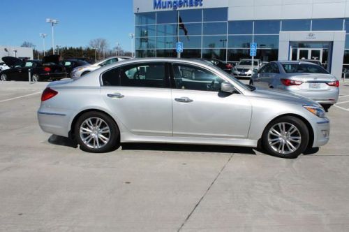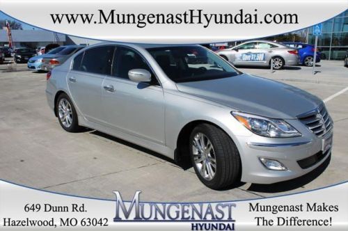 Genesis 3.8, 4D Sedan, 3.8L V6 DGI DOHC Dual CVVT, 8-Speed Automatic with SHIFTRONIC, RWD, Platinum Metallic, and Jet Blk Leather Seats. Don't miss your opportunity at purchasing this great 2013 Hyundai Genesis. This Genesis's engine never skips a beat. It's nice being able to slip that key into the ignition and not having to cross your fingers every time. Experience the Mungenast Difference! Visit us at mungenasthyundai.com. Mungenast Hyundai in Hazelwood just off of North Lindbergh and I-270 at 649 Dunn Rd, Hazelwood, MO 63042 888-212-1161 St Louis's Low-Priced Volume Hyundai Dealer! Remember, Hyundai makes the car, Mungenast makes the difference!Prices do not include additional fees and costs of closing, including government fees and taxes, any finance charges, any dealer fees, any emissions testing fees or other fees. All prices, specifications and availability subject to change without notice. Contact dealer for most current information. Advertised price includes all available factory and dealership rebates and discounts. See Mungenast Hyundai for complete details. This offer includes all rebates and dealer cash back to the dealer. Includes the $2000 HMF Bonus cash so this offer in not available with 0% financing. Includes Valued Owner Rebate of $500 and Military Rebate of $500. See a Mungenast Sales Associate for complete details and requirements for rebates. All Dealer Installed Accessories are extra. Come Experience the Mungenast Difference at Mungenast Hyundai. St Louis' Low Price Volume Hyundai Dealership. View the new prices at MungenastHyundai.com At 270 and N. Lindberg on Dunn Rd in Hazelwood, MO. Remember Hyundai Makes the Car, Mungenast Makes the Difference! 888-212-1161