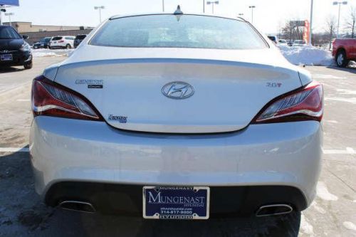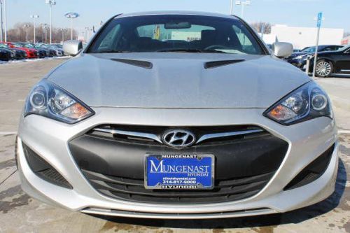 Genesis Coupe 2.0T, 2D Coupe, 2.0L 4-Cylinder DOHC 16V Dual CVVT, 8-Speed Automatic with SHIFTRONIC, RWD, and Platinum Metallic. Don't pay too much for the good-looking car you want...Come on down and take a look at this great-looking 2013 Hyundai Genesis Coupe. Some say you can't judge a book by its cover, but maybe you can by its color! The paint on this Genesis Coupe speaks volumes about its personality. Experience the Mungenast Difference! Visit us at mungenasthyundai.com. Mungenast Hyundai in Hazelwood just off of North Lindbergh and I-270 at 649 Dunn Rd, Hazelwood, MO 63042 888-212-1161 St Louis's Low-Priced Volume Hyundai Dealer! Remember, Hyundai makes the car, Mungenast makes the difference!Prices do not include additional fees and costs of closing, including government fees and taxes, any finance charges, any dealer fees, any emissions testing fees or other fees. All prices, specifications and availability subject to change without notice. Contact dealer for most current information. Advertised price includes all available factory and dealership rebates and discounts. See Mungenast Hyundai for complete details. This offer includes all rebates and dealer cash back to the dealer. Includes the $2000 HMF Bonus cash so this offer in not available with 0% financing. Includes Valued Owner Rebate of $500 and Military Rebate of $500. See a Mungenast Sales Associate for complete details and requirements for rebates. All Dealer Installed Accessories are extra. Come Experience the Mungenast Difference at Mungenast Hyundai. St Louis' Low Price Volume Hyundai Dealership. View the new prices at MungenastHyundai.com At 270 and N. Lindberg on Dunn Rd in Hazelwood, MO. Remember Hyundai Makes the Car, Mungenast Makes the Difference! 888-212-1161