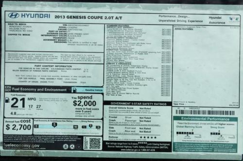 2013 hyundai genesis coupe 2.0t premium(US $25,581.00)