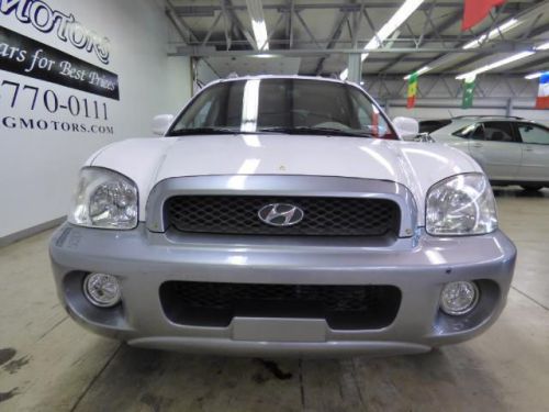 UP FOR SALE IS A 2004 HYNDAI SANTAFE, GREAT CONDITION, AUTOMATIC, ALL WHEEL DRIVE, HEATED LEATHER SEATS, POWER WINDOWS, POWER DOOR LOCKS, ALLOY WHEELS, TILT STEERING, POWER STEERING, AM/FM/CD PLAYER, CRUISE CONTROL, VERY CLEAN INSIDE AND OUT, RUNS AND DRIVES GREAT, WARRANTY IS AVAILABLE FOR UP TO 48 MONTHS, PLEASE VISIT WWW.KGMOTORS.COM FOR MORE INFORMATION, PICTURES, AND A FREE CARFAX, OR CALL US TODAY AT 877-875-4240!!! WE SELL ALL OF OUR CARS AT ALMOST WHOLESALE PRICES, SO PLEASE CALL US AND CONFIRM THAT THE CAR IS STILL AVAILABLE. PRICES ARE SUBJECT TO CHANGE. Visit KG Motors online at www.kgmotors.com to see more pictures of this vehicle or call us at 877-875-4240 today to schedule your test drive. VERY CLEAN INSIDE AND OUT, DRIVES AND LOOKS EXCELLENT, WARRANTY IS AVAILABLE, TRADES ARE ALWAYS WELCOME, PLEASE VISIT OUR WEBSITE AT WWW.KGMOTORS.COM FOR MORE PICTURES AND INFO.