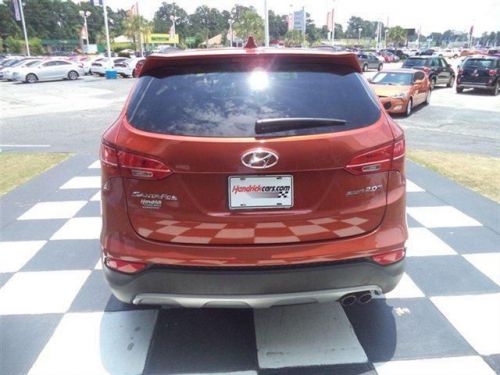 Hyundai Certified, Excellent Condition, ONLY 7,769 Miles! PRICED TO MOVE $1,300 below NADA Retail!, EPA 27 MPG Hwy/20 MPG City! Heated Seats, iPod/MP3 Input, Satellite Radio, Head Airbag, Keyless Start, CD Player, Turbo Charged CLICK NOW!======BUY WITH CONFIDENCE: 150-Point Inspection and Reconditioning, 24-Hour Roadside Assistance, 10-Year/ 100, 000 mile powertrain limited warrantty, Towing/Rental/Travel Breakdown Benefits, Carfax Vehicle History Report, 10-Year/Unlimited mileage roadside assistance & 1st-Day Rental Car reimbursement for covered repairs ======AFFORDABLE: This Santa Fe is priced $1, 300 below NADA Retail. ======KEY FEATURES INCLUDE: Heated Driver Seat, Satellite Radio, iPod/MP3 Input, CD Player, Onboard Communications System, Keyless Start, Heated Seats Rear Spoiler, MP3 Player, Privacy Glass, Keyless Entry, Steering Wheel Controls. ======OPTION PACKAGES: AUTO-DIMMING MIRROR with HOMELINK & COMPASS, CARPETED FLOOR MATS, MUDGUARDS, WHEEL LOCKS, CANYON COPPER, BLACK, SEAT TRIM. 2.0T Sport with Canyon Copper exterior and Black interior features a 4 Cylinder Engine with 264 HP at 6000 RPM*. Serviced here, Non-Smoker vehicle, Originally bought here, 4 brand new tires, Fully Inspected, New Brakes. ======EXPERTS REPORT: Edmunds.com's review says The redesigned 2013 Hyundai Santa Fe has what it takes to unseat the class-leading crossovers, with quality, power, comfort and style.. Great Gas Mileage: 27 MPG Hwy. ======BUY FROM AN AWARD WINNING DEALER: Hendrick Hyundai North! Our team is professional, offers you a no-pressure environment and operates with the quality you expect. Closing Fee is included in the advertised/sales price. Pricing analysis performed on 6/5/2014. Horsepower calculations based on trim engine configuration. Fuel economy calculations based on original manufacturer data for trim engine configuration. Please confirm the accuracy of the included equipment by calling us prior to purchase. WE HAVE ACCESS TO THOUSANDS OF USED CARS THROUGH OUR SISTER STORES ALL OVER THE SOUTH EAST! GET MORE USED CAR FOR YOUR HARD-EARNED DOLLAR FROM HENDRICK HYUNDAI'S INTERNET SALES TEAM!
