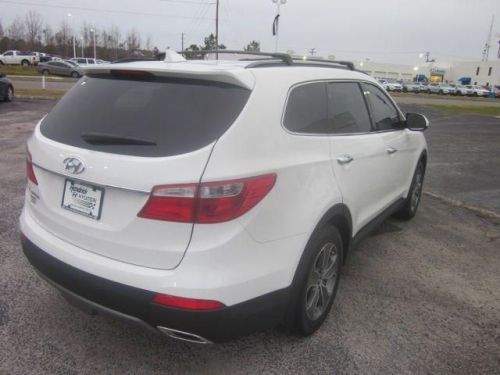 This 2014 Hyundai Santa Fe 4dr FWD 4dr GLS SUV features a 3.3L GDI DOHC 24-VALVE V6 6cyl Gasoline engine. It is equipped with a 6 Speed Automatic transmission. The vehicle is Monaco White with a Beige interior. It is offered with a full factory warranty. - Cruise Control, Tinted Windows, Power Door Locks, Power Drivers Seat, Roof Rack, Tachometer, Digital Info Center, Tilt Steering Wheel, Steering Wheel Radio Controls, Side Airbags, Keyless Entry, Security System, ABS Brakes, Traction Control, Dynamic Stability, Rear Defogger, Fog Lights, Intermittent Wipers, Alloy Wheels, 3.3L GDI DOHC 24-Valve V6, Front-Wheel Drive, Power Rear Windows and Fixed 3rd Row Windows, Blue Link Selective Service Internet Access, Fixed 50-50 Split-Bench Yes Essentials Premium Cloth 3rd Row Seat Front, Leather/Metal-Look Steering Wheel, Front Cupholder, Rear Cupholder, Rear HVAC, HVAC -inc: Underseat Ducts and Headliner/Pillar Ducts, Locking Glove Box, Driver Foot Rest, Interior Trim -inc: Simulated Wood Instrument Panel Insert, Full Cloth Headliner, Leather/Piano Black Gear Shift Knob, Driver And Passenger Visor Vanity Mirrors with Driver And Passenger Illumination, Full Floor Console with Covered Storage, Front Map Lights, Fade-To-Off Interior Lighting, Full Carpet Floor Covering, Carpet Floor Trim, Cargo Area Concealed Storage, Cargo Space Lights, FOB Controls -inc: Trunk/Hatch/Tailgate, Tracker System, Instrument Panel Bin, Power 1st Row Windows with Driver 1-Touch Up/Down, Delayed Accessory Power, Systems Monitor, Outside Temp Gauge, Analog Display, Manual Adjustable Front Head Restraints and Manual Adjustable Rear Head Restraints, Front Center Armrest and Rear Center Armrest, 2 Seatback Storage Pockets, 4 12V DC Power Outlets, Air Filtration, beige, beige, Tires: P235/60R18, Compact Spare Tire Stored Underbody with Crankdown, Clearcoat Paint, Body-Colored Front Bumper with Black Rub Strip/Fascia Accent, Body-Colored Rear Bumper with Black Rub Strip/Fascia Accent, Black Bodys ... HYUNDAI HAS THE MOST MODERN, ATTRACTIVE, UPDATED LINE-UP FOR 2012. GET MORE CAR FOR YOUR HARD-EARNED DOLLAR FROM HENDRICK HYUNDAI'S INTERNET SALES TEAM!