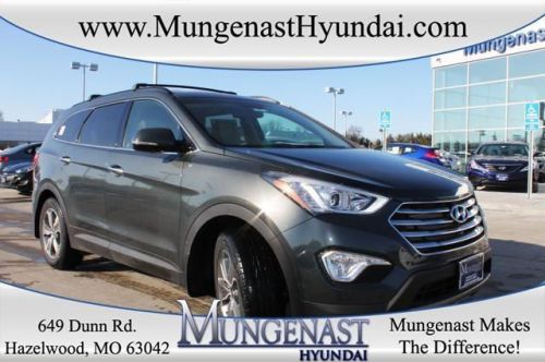 Santa Fe GLS, 4D Sport Utility, 3.3L V6 DGI DOHC 24V, 6-Speed Automatic with Shiftronic, FWD, Hampton Green Pearl, and Bge Cloth W/Yes Essential. Put down the mouse because this 2014 Hyundai Santa Fe is the SUV you've been searching for. It's the combination of advanced design and precision engineering that makes the 3.3L V6 DGI DOHC 24V engine such an impressive powerplant. Experience the Mungenast Difference! Visit us at mungenasthyundai.com. Mungenast Hyundai in Hazelwood just off of North Lindbergh and I-270 at 649 Dunn Rd, Hazelwood, MO 63042 888-212-1161 St Louis's Low-Priced Volume Hyundai Dealer! Remember, Hyundai makes the car, Mungenast makes the difference!Prices do not include additional fees and costs of closing, including government fees and taxes, any finance charges, any dealer fees, any emissions testing fees or other fees. All prices, specifications and availability subject to change without notice. Contact dealer for most current information. Advertised price includes all available factory and dealership rebates and discounts. See Mungenast Hyundai for complete details. This offer includes all rebates and dealer cash back to the dealer. Includes the $2000 HMF Bonus cash so this offer in not available with 0% financing. Includes Valued Owner Rebate of $500 and Military Rebate of $500. See a Mungenast Sales Associate for complete details and requirements for rebates. All Dealer Installed Accessories are extra. Come Experience the Mungenast Difference at Mungenast Hyundai. St Louis' Low Price Volume Hyundai Dealership. View the new prices at MungenastHyundai.com At 270 and N. Lindberg on Dunn Rd in Hazelwood, MO. Remember Hyundai Makes the Car, Mungenast Makes the Difference! 888-212-1161