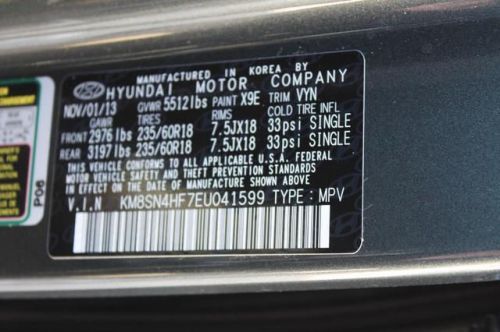 VIN (Vehicle Identification Number): KM8SN4HF7EU041599