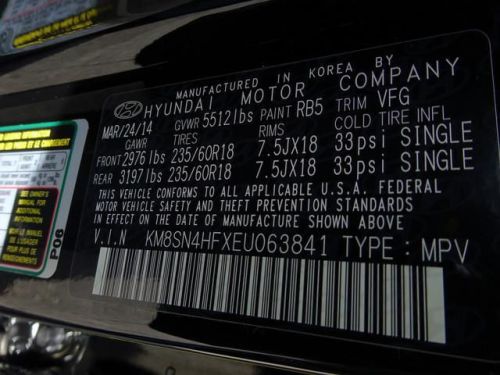 VIN (Vehicle Identification Number): KM8SN4HFXEU063841