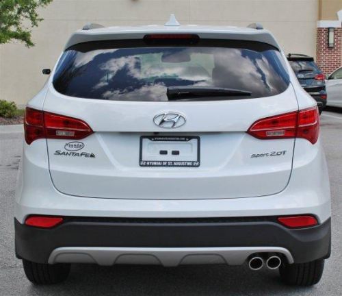 Turbo Santa Fe Sport with Navigation Package, floor mats, cargo net, cargo cover, mud guards, and wheel locks.Includes Hyundai Connected Care, which gives you 3 years free of safety and car care features of Hyundai BlueLink. Every new Hyundai from Hyundai of St. Augustine includes your first two oil changes free! Posted Internet price includes $750 Hyundai Motor Finance Bonus Cash for financing with Hyundai Motor Finance with approved credit. Find out why Santa Fe Sport was Autbytel's 2013 Crossover Utility Vehicle of the year, an IIHS Top Safety Pick, and ALG's top residual value award for the segment in 2013. Posted Internet price includes dealer discount ! Covered by the Hyundai Assurance Plan, including a 10 year/100,000 mile limited powertrain warranty, 5 years/60,000 miles comprehensive warranty, and 5 years/unlimited mileage roadside assistance. Visit Dealerrater.com to see what customers are saying and why Hyundai of St. Augustine is the #1 Hyundai dealer in the country. Selling price includes applicable factory rebate. Selling price is plus applicable tax, tag/registration, and dealer fee of 599.50 Announcing upfront pricing from Hyundai of St. Augustine. We want to save you time and money by providing you with an upfront, competitive price on all new Hyundai's. Find out why Hyundai of St. Augustine is the 2010/2011/2012 Hyundai Dealer of the Year on Dealerrater.com