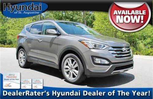Turbo Santa Fe Sport with Navigation Package, floor mats, cargo net, cargo tray, first aid kit, mud guards, rear bumper protector, and wheel locks. Includes Hyundai Connected Care, which gives you 3 years free of safety and car care features of Hyundai BlueLink. Every new Hyundai from Hyundai of St. Augustine includes your first two oil changes free! Posted Internet price includes $750 Hyundai Motor Finance Bonus Cash for financing with Hyundai Motor Finance with approved credit. Find out why Santa Fe Sport was Autbytel's 2013 Crossover Utility Vehicle of the year, an IIHS Top Safety Pick, and ALG's top residual value award for the segment in 2013. Posted Internet price includes dealer discount ! Covered by the Hyundai Assurance Plan, including a 10 year/100,000 mile limited powertrain warranty, 5 years/60,000 miles comprehensive warranty, and 5 years/unlimited mileage roadside assistance. Visit Dealerrater.com to see what customers are saying and why Hyundai of St. Augustine is the #1 Hyundai dealer in the country. Selling price includes applicable factory rebate. Selling price is plus applicable tax, tag/registration, and dealer fee of 599.50 Announcing upfront pricing from Hyundai of St. Augustine. We want to save you time and money by providing you with an upfront, competitive price on all new Hyundai's. Find out why Hyundai of St. Augustine is the 2010/2011/2012 Hyundai Dealer of the Year on Dealerrater.com
