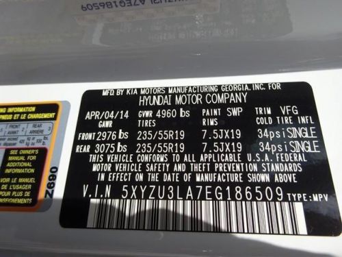 VIN (Vehicle Identification Number): 5XYZU3LA7EG186509