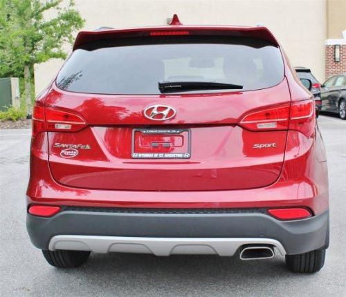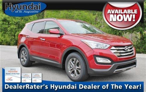 Santa Fe Sport with Premium Equipment Package, Popular Equipment Package, floor mats, cargo mat, and mud guards. Includes Hyundai Connected Care, which gives you 3 years free of safety and car care features of Hyundai BlueLink. Every new Hyundai from Hyundai of St. Augustine includes your first two oil changes free! Posted Internet price includes $750 Hyundai Motor Finance Bonus Cash for financing with Hyundai Motor Finance with approved credit. Find out why Santa Fe Sport was Autbytel's 2013 Crossover Utility Vehicle of the year, an IIHS Top Safety Pick, and ALG's top residual value award for the segment in 2013. Posted Internet price includes dealer discount ! Covered by the Hyundai Assurance Plan, including a 10 year/100,000 mile limited powertrain warranty, 5 years/60,000 miles comprehensive warranty, and 5 years/unlimited mileage roadside assistance. Visit Dealerrater.com to see what customers are saying and why Hyundai of St. Augustine is the #1 Hyundai dealer in the country. Selling price includes applicable factory rebate. Selling price is plus applicable tax, tag/registration, and dealer fee of 599.50 Announcing upfront pricing from Hyundai of St. Augustine. We want to save you time and money by providing you with an upfront, competitive price on all new Hyundai's. Find out why Hyundai of St. Augustine is the 2010/2011/2012 Hyundai Dealer of the Year on Dealerrater.com