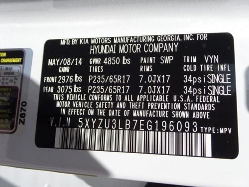 VIN (Vehicle Identification Number): 5XYZU3LB7EG196093