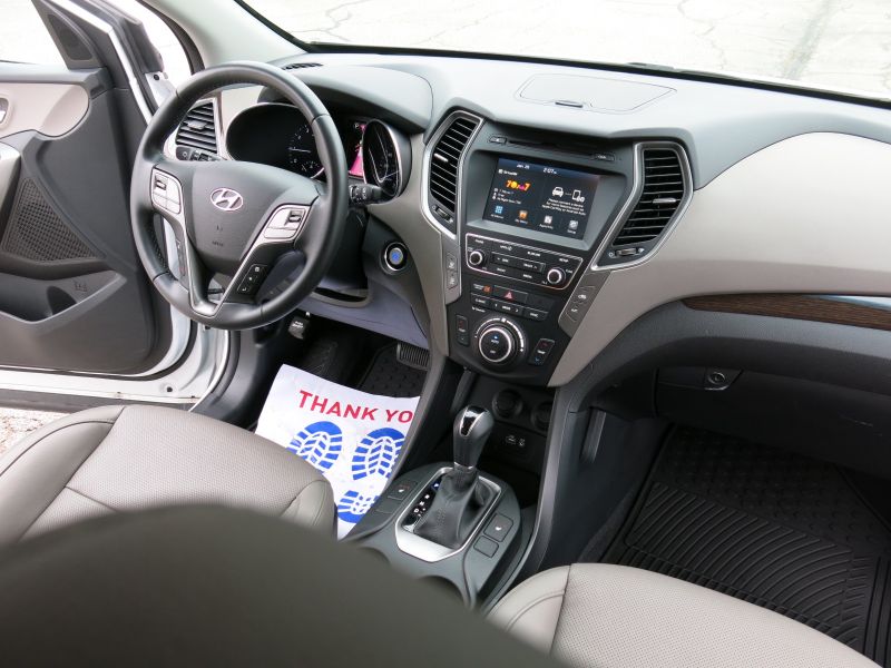 2017 Hyundai SantaFe Sport FWD SUV (VIN: 5NMZU3LB5HH042024), frost white pearl / gray leather int. with black carpeting, 19,260 miles, 6-spd. auto trans. with Active Eco mode, 2.4L 4 cyl. engine with direct injection and variable valve timing, 4-wheel disc brakes with ABS, brake assist, electronic brake force distribution and electronic stability control with traction control, Options: special paint, all-weather floor mats, cargo net, Popular equip. package: 7-inch display with sat radio, premium sound with CD / MP3 / satellite radio and Bluetooth phone and audio, dual temp control, BlueLink connection, power driver seat w/ lumbar & power passenger seat, LED daytime running lights, Premium package: leather interior, heated front seats, reclining rear seats, blind spot and rear cross-traffic detection plus lane-change assist, power open /close liftgate, keyless proximity entry w/ alarm, keyless-go, backup camera, tilt leather wrapped steering wheel w/ audio, phone and cruise controls, manual rear side sunshades, auto-dim rearview mirror with compass, Homelink, intermittent wipers, 17" rims. EPA fuel economy of 21 mpg. city / 27 mpg. highway, sold new locally & 1 owner since new, both keys / remotes, all books & manuals plus original window sticker & all service receipts, no open recalls, clean CarFax report, in-service date 06/19/2017 - remainder of full factory warranty (to 06/19/2022 or 60,000 miles), and remainder of 5 year unlimited mileage roadside assistance, new MSRP of $31,575.00, like new inside & out, needs nothing but a new owner!, offered at $19,900.00 / best offer. Call or text Brian @ (812) 760-5513 ~ located in So. IN.